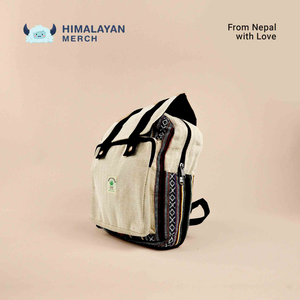 Characteristics: An ecological and durable material, made of natural, genuine hemp and firm cotton lining, hand-made in Nepal in meditation with Mother Earth. Hemp is a naturally strong, antibacterial, antimicrobial material grown with zero pesticides. It is sustainable and therefore an ecologically friendly solution for a backpack fabric.